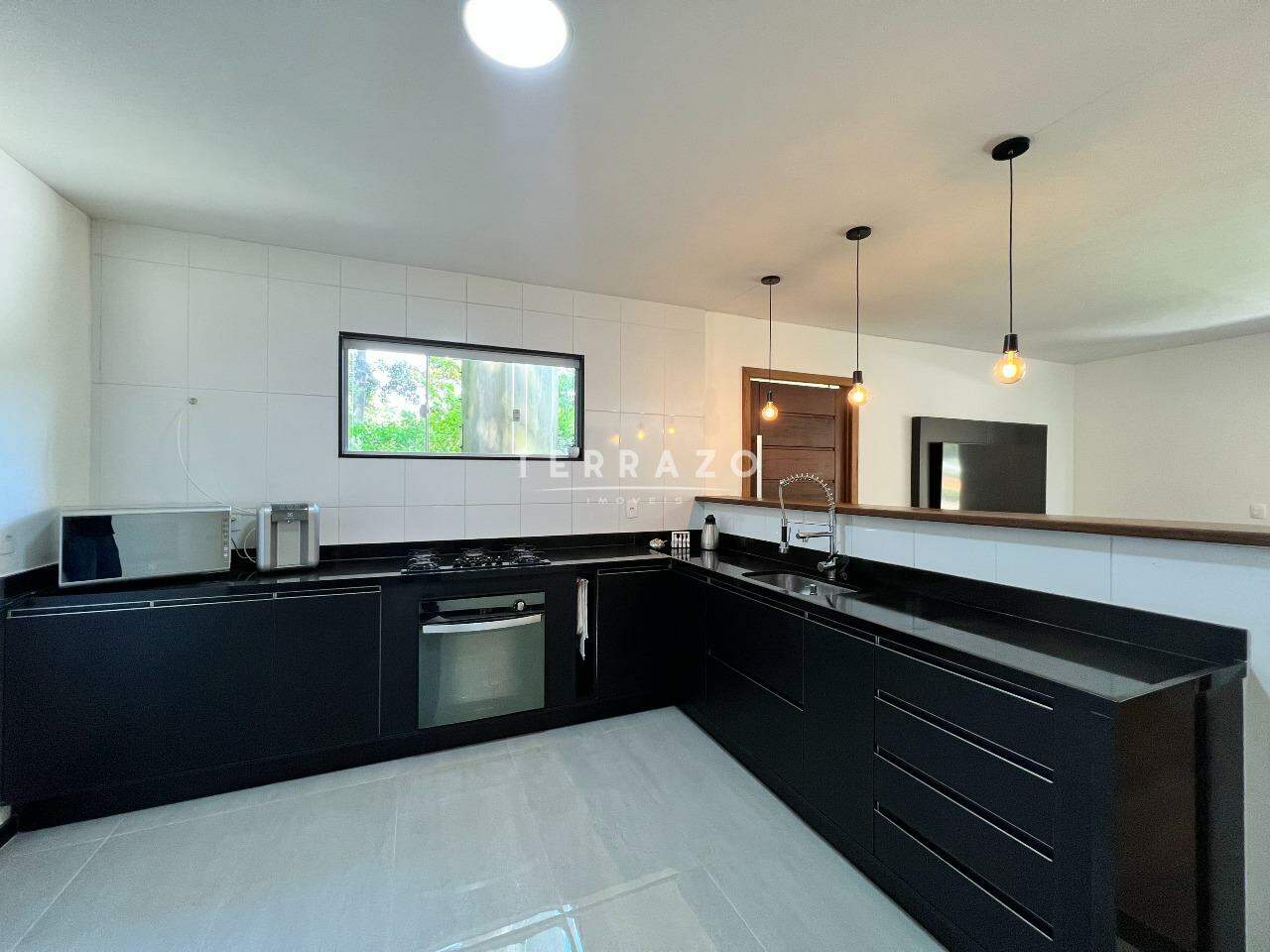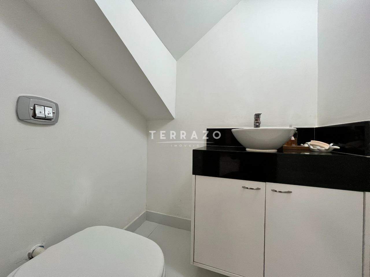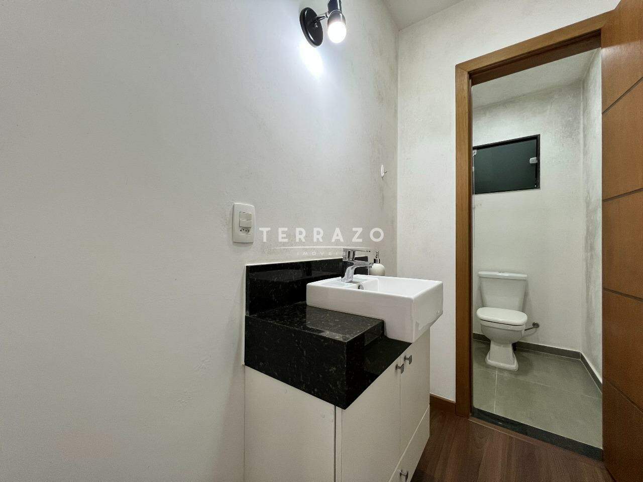 No primeiro pavimento, sala ampla pé direito alto, cozinha ampla com armários planejados, lavabo, 1 suíte para hóspedes.