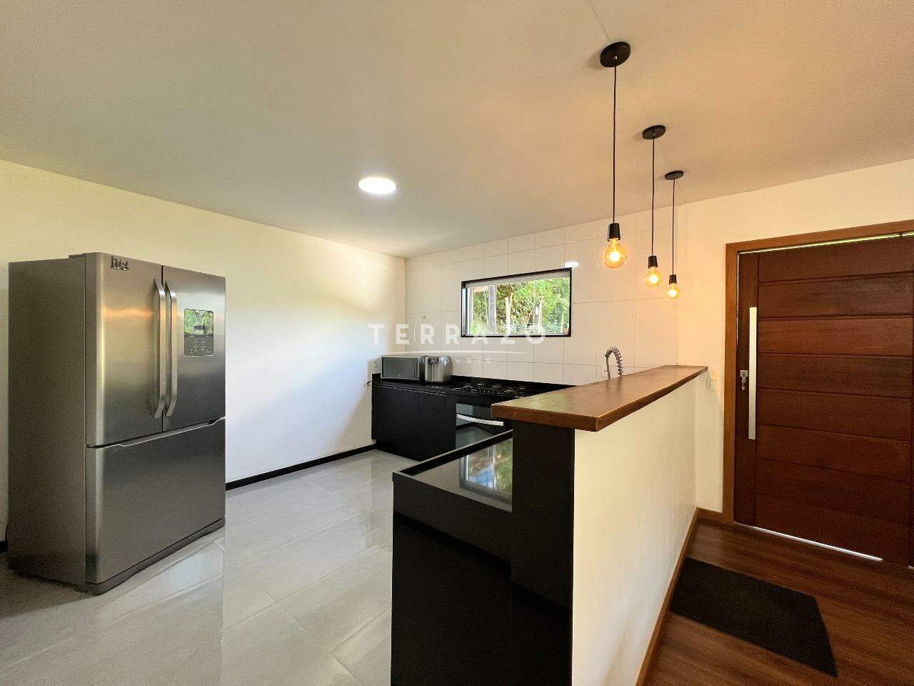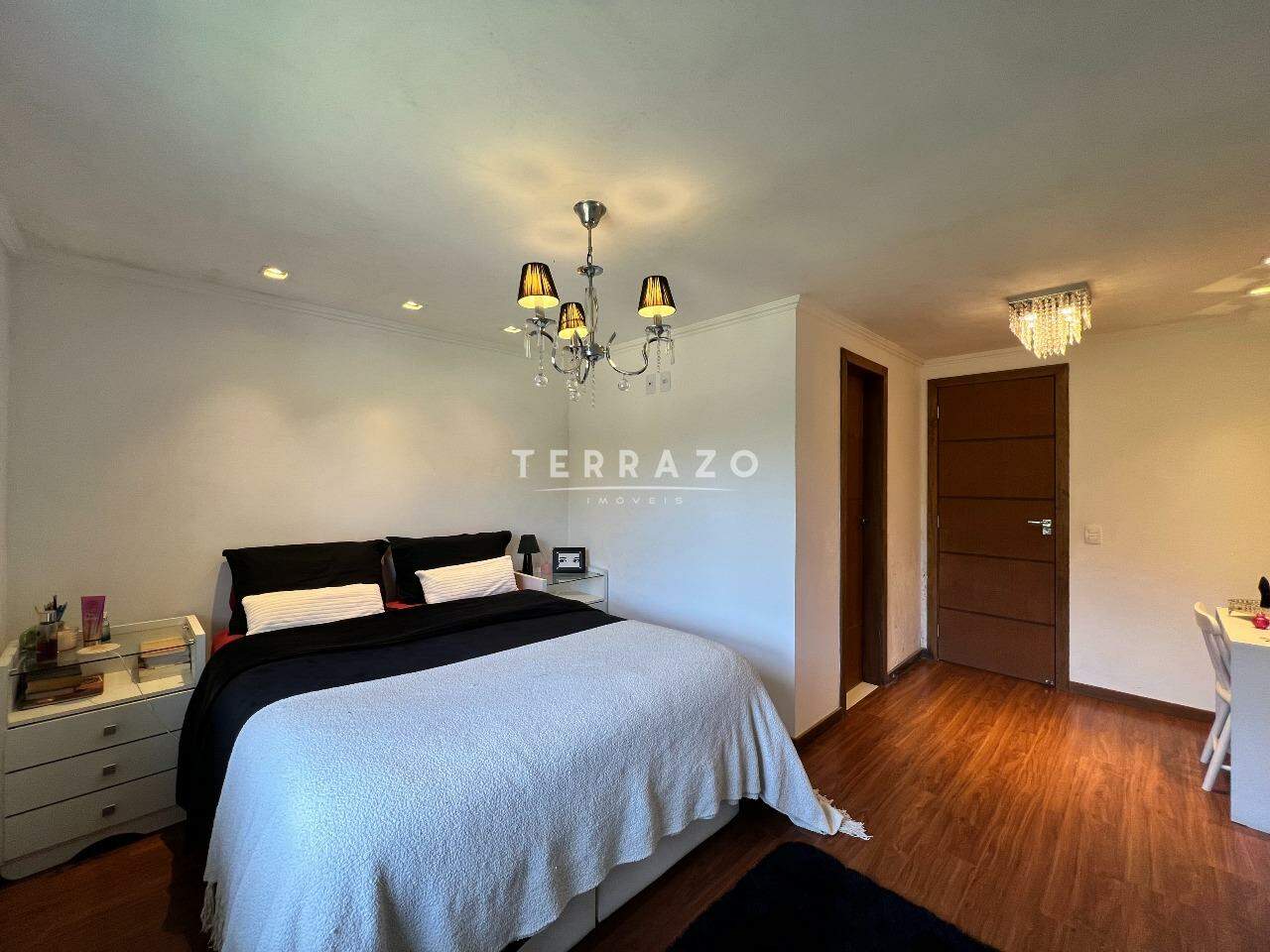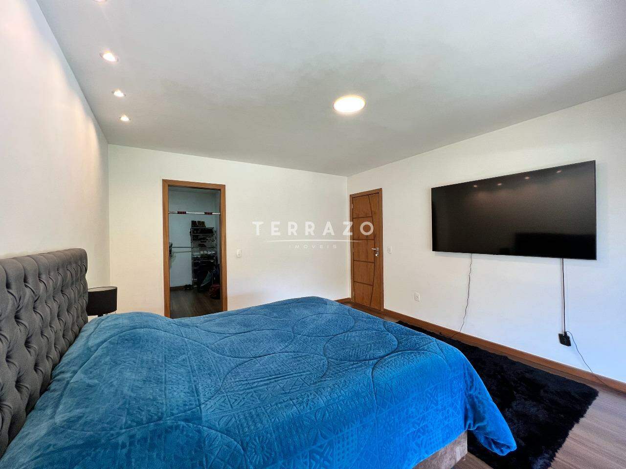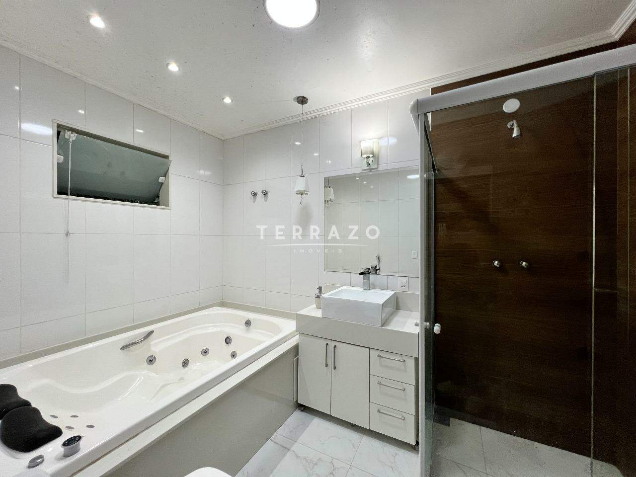 No primeiro pavimento, sala ampla pé direito alto, cozinha ampla com armários planejados, lavabo, 1 suíte para hóspedes.