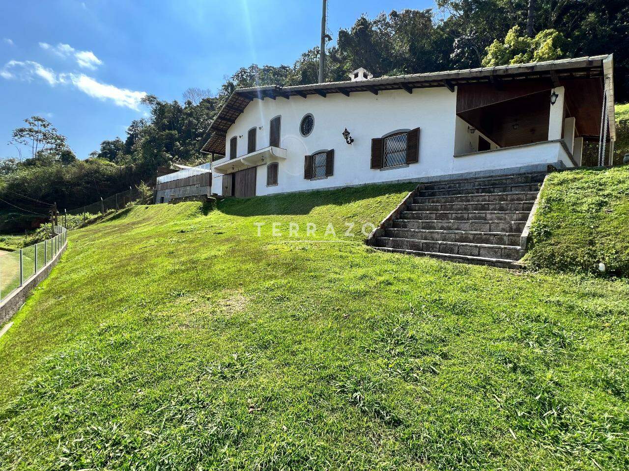 Área externa: garagem coberta para 4 carros, lavanderia, canil, um jardim maravilhoso.